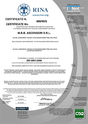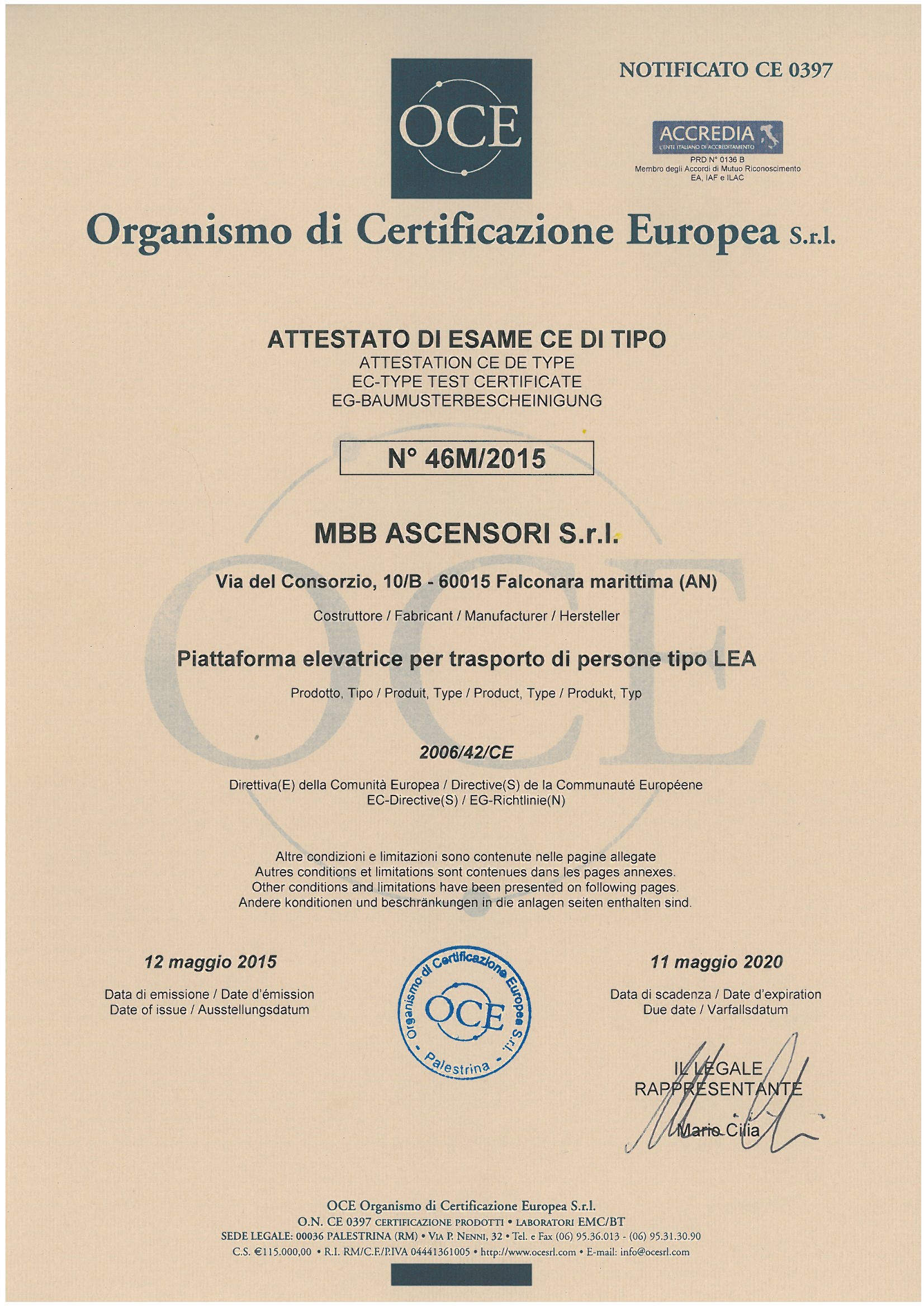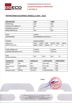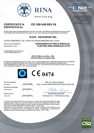 Module H (Ann.XIII) Directive 95/16/CE Download Pdf Certification ISO 9001:2008 Download Pdf Hydraulic Platform Certification Download Pdf Electric Platform Certification Download Pdf